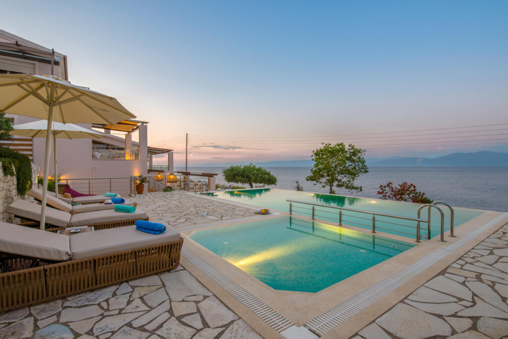 With a view of the islet of Panagia, but also of Agios Nikolaos and with the imposing mountains of Epirus as a background, the newly built villa TERRA DEL NONNO dominates.