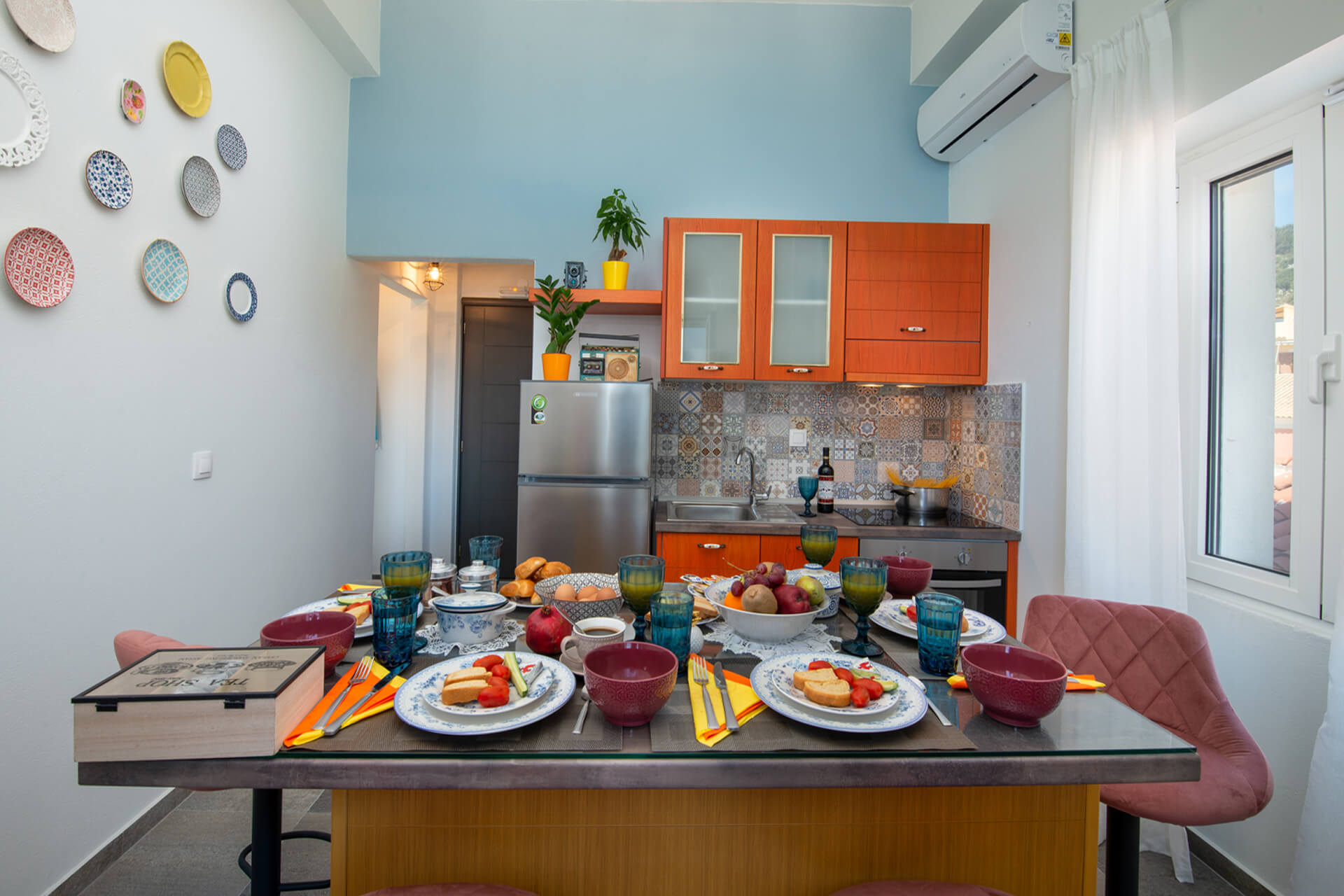 This vintage decorated and luxury apartment located on the main square of Gaios, just a breath from shops, bars, cafes, restaurants and all kinds of activities can host you any time pf the year. It's fully renovated and recommended for families and small travel groups. The beach is just a 2-minute walk away, while the boats that depart regularly for the tropical beaches of Antipaxos are right below the accommodation.